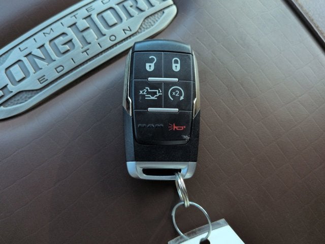 This vehicle has the following options in addition to the standard equipment: Body Color Bumper Group (Painted Front Bumper and Painted Rear Bumper), Longhorn Level 1 Equipment Group (1-Year SiriusXM Guardian Trial, 12" Touchscreen Display, 17 Speaker harman kardon Premium Sound, 4G LTE Wi-Fi Hot Spot, Apple CarPlay, Blind Spot & Cross Path Detection (DISC), Disassociated Touchscreen Display, Google Android Auto, GPS Antenna Input, GPS Navigation, HD Radio, Integrated Voice Command w/Bluetooth®, Power Deployable Running Boards, Radio: Uconnect 12.0 w/Navigation, Ramcharger Wireless Charging Pad, Selectable Tire Fill Alert, SiriusXM Satellite Radio, SiriusXM Traffic Plus, SiriusXM Travel Link, and SiriusXM w/360L), Quick Order Package 2HK Longhorn, Safety Group (Adaptive Cruise Control w/Stop, Adaptive Steering System, Digital Rearview Mirror, Full Speed Forward Collision Warning Plus, and Lane Keep Assist), Ram Combined Certified, 10 Speakers, 115V Auxiliary Rear Power Outlet, 2 Way Rear Headrest Seat, 220 Amp Alternator, 4 Way Front Headrests, 4-Wheel Disc Brakes, 5th Wheel/Gooseneck Towing Prep Group, 6000# Front Axle w/Hub Ext, 8.4" Touchscreen Display, ABS brakes, Active Noise Control System, Adjustable pedals, Air Conditioning, Air Suspension Decal, Alloy wheels, AM/FM radio: SiriusXM, Apple CarPlay/Android Auto, Audio memory, Auto High-beam Headlights, Auto Level Rear Air Suspension, Auto-dimming Rear-View mirror, Automatic temperature control, Box & Rear Fender Clearance Lamps, Brake assist, Bucket Seats, Bumpers: chrome, Center Hub, Chrome Flat Cab-Length Side Steps, Clearance Lamps, Compass, Dash Pass Thru Wire Circuits, Delay-off headlights, Driver door bin, Driver vanity mirror, Dual front impact airbags, Dual front side impact airbags, Dual Rear Wheels, Electronic Stability Control, Electronically Controlled Throttle, Emergency communication system: SiriusXM Guardian, Front anti-roll bar, Front Bucket Seats, Front Center Armrest w/Storage, Front dual zone A/C, Front fog lights, Front reading lights, Front Seat Back Map Pockets, Full Length Premium Upgraded Floor Console, Fully automatic headlights, Garage door transmitter, Genuine wood console insert, Genuine wood dashboard insert, Genuine wood door panel insert, Heated door mirrors, Heated Front Seats, Heated front seats, Heated rear seats, Heated Second Row Seats, Heated Steering Wheel, Heated steering wheel, High Back Seats, I/P Mounted Auxiliary Switches, Illuminated entry, Integrated Center Stack Radio, Leather steering wheel, Low tire pressure warning, Memory seat, Navigation System, Occupant sensing airbag, Outside temperature display, Overhead airbag, Overhead console, Panic alarm, ParkView Rear Back-Up Camera, Passenger door bin, Passenger vanity mirror, Pedal memory, Power 8-Way Adjustable Passenger Seat, Power Adjust 8-Way Driver Seat, Power door mirrors, Power driver seat, Power passenger seat, Power steering, Power Sunroof, Power windows, Premium Filigree Leather Seats, Radio data system, Radio: Uconnect 4C Nav w/8.4" Display, Rain sensing wipers, Rear 60/40 Folding Seat, Rear reading lights, Rear seat center armrest, Rear step bumper, Rear Wheelhouse Liners, Rear window defroster, Remote keyless entry, Security system, Speed control, Split folding rear seat, Steering wheel mounted audio controls, Tachometer, Tilt steering wheel, Tip Start, Tire Pressure Monitoring Delete, Traction control, Tri-Fold Tonneau Cover, Trip computer, Turn signal indicator mirrors, Variably intermittent wipers, Ventilated Front Seats, Ventilated front seats, Voltmeter, Wheels: 17" x 6.0" Premium Aluminum, and Wheels: 18" x 8.0" Polished Aluminum.