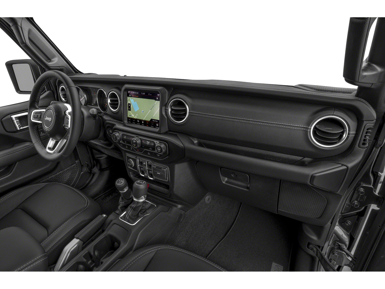 The Gladiator's sleek Black exterior and striking design turn heads wherever you go. Step inside the spacious cabin and enjoy the comfort of the Overland Cloth Bucket Seats, while the Uconnect 4C Nav system keeps you connected and entertained.