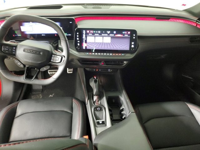 THIS VEHICLE INCLUDES THE FOLLOWING FEATURES AND OPTIONS: Blacktop Package (Dark Exterior Badging and Nexen Brand Tires), Plus Group (16" Color Driver Display, 20" x 9" Aluminum Wheels, Ambient Light Color Control, Automatic High-Beam Headlamp Control, Black Color Multi-Function Mirrors, Bright Pedals, Enhanced Security Alarm, Exterior Mirrors Logo Lamps, Exterior Mirrors w/Memory, Front Cubby Bin w/Light, Frunk, Glove Box Lamp, Heads-Up Display, Heated Exterior Mirrors, Illuminated Door Pull Handles, Leatherette Seats, LED Footwell Lighting, LED Map Pockets, Map-In-Cluster Display, Power Adjust Mirrors, Power Hatch, Power Tilt/Telescope Steering Column, Power Windows Global Down w/Key Fob, Premium Door Trim Panel, Premium Instrument Panel, Premium Interior Accents, Premium LED Low-High Reflective Headlamps, Radio, Driver Seat, Mirrors & Steering Column Memory, Rain Sensitive Windshield Wipers, Surround View Camera System, Windshield Wiper De-Icer, Wireless Charging Pad, 2-Way Manual Adjust Head Restraints, 2-Way Power Driver Lumbar Adjust, 8-Way Power Driver Seat Adjust, Heated Front Seats, Heated Second Row Seats, Low Back Bucket Seats, Power 2-Way Passenger Lumbar Adjust, Power Adjust 8-Way Front Passenger Seat, and Ventilated Front Seats), Quick Order Package 25M R/T, Sun & Sound Package (18 High Performance Alpine Speakers w/Subwoofer and Full Glass Roof), Two Tone Paint Group, AWD, Black Premium Synthetic, Navigation System, Navigation system: TomTom, 10 Speakers, 18" x 8.5" Aluminum Wheels, 4-Wheel Disc Brakes, ABS brakes, Air Conditioning, Alloy wheels, AM/FM radio: SiriusXM w/360L, Apple CarPlay/Android Auto, Auto-dimming Rear-View mirror, Automatic temperature control, Black Seats, Brake assist, Bumpers: body-color, Compass, Delay-off headlights, Driver door bin, Driver vanity mirror, Dual front impact airbags, Dual front side impact airbags, Electronic Stability Control, Emergency communication system: Dodge Connect, Four wheel independent suspension, Front anti-roll bar, Front Bucket Seats, Front Center Armrest, Front dual zone A/C, Front reading lights, Fully automatic headlights, Garage door transmitter, Heated door mirrors, Heated front seats, Heated steering wheel, Illuminated entry, Knee airbag, Leather Shift Knob, Leatherette/Cloth Performance Seats, Low tire pressure warning, Occupant sensing airbag, Outside temperature display, Overhead airbag, Overhead console, Panic alarm, ParkView Rear Back-Up Camera, Passenger door bin, Passenger vanity mirror, Power door mirrors, Power driver seat, Power steering, Power windows, Radio data system, Radio: Uconnect 5 Nav w/12.3" Display, Rear anti-roll bar, Rear reading lights, Rear seat center armrest, Rear window defroster, Remote keyless entry, Security system, Speed control, Split folding rear seat, Sport steering wheel, Steering wheel mounted audio controls, Telescoping steering wheel, Tilt steering wheel, Traction control, Trip computer, Variably intermittent wipers, and Wheels: 20" x 10" Dark Finish Aluminum.