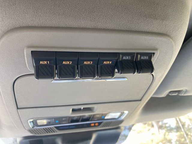 DETAILED OPTIONS AND EQUIPTMENT: Order Code 708A, 4WD, 14 Speakers, ABS brakes, Adjustable pedals, Air Conditioning, AM/FM radio: SiriusXM with 360L, Auto High-beam Headlights, Auto tilt-away steering wheel, Auto-dimming Rear-View mirror, Automatic temperature control, Bumpers: body-color, Compass, Delay-off headlights, Electronic Stability Control, Electronic-Locking w/3.31 Axle Ratio, Exterior Parking Camera Rear, Flow-Through Console, Front dual zone A/C, Front fog lights, Fully automatic headlights, Garage door transmitter, Heads-Up Display, Heated door mirrors, Heated front seats, Heated rear seats, Heated steering wheel, Hill Descent Control, Illuminated entry, Leather steering wheel, Low tire pressure warning, Memory seat, Navigation system: Connected Navigation (includes complimentary 1-year trial), Overhead console, Pedal memory, Power door mirrors, Power driver seat, Power moonroof, Power passenger seat, Power steering, Power windows, Radio: B&O Unleashed Sound System by Bang & Olufsen, Rain sensing wipers, Rear step bumper, Remote keyless entry, SiriusXM Radio w/360L, Speed control, Steering wheel memory, Steering wheel mounted A/C controls, Steering wheel mounted audio controls, SYNC 4 w/Enhanced Voice Recognition, Telescoping steering wheel, Tilt steering wheel, Tough Bed Spray-In Bedliner, Traction control, Turn signal indicator mirrors, Unique Limited 2-Tone Leather 40/Console/40 Seats, Variably intermittent wipers, Ventilated front seats, Wheels: 20 Polished & Carbonized Gray Aluminum, 4-Wheel Disc Brakes, Brake assist, Driver door bin, Driver vanity mirror, Dual front impact airbags, Dual front side impact airbags, Emergency communication system: SYNC 4 911 Assist, Front anti-roll bar, Front Bucket Seats, Front Center Armrest, Front reading lights, Outside temperature display, Overhead airbag, Panic alarm, Passenger vanity mirror, Rear reading lights, Rear seat center armrest, Rear window defroster, Security system, Split folding rear seat, Tachometer, and Trip comp