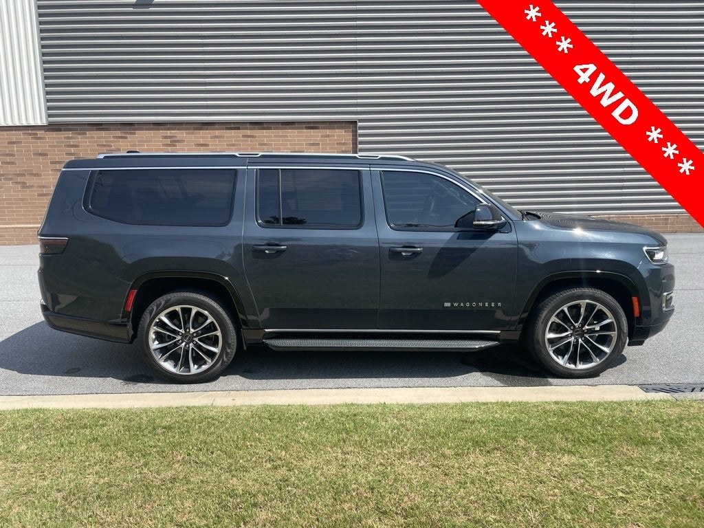**LOCAL TRADE-IN**, **NAVIGATION**, **Bluetooth®**, **USB PORT**, **PREMIUM AUDIO SYSTEM w/CD**, **PREMIUM WHEELS**, **REMOTE KEYLESS ENTRY w/PANIC ALARM, *** TRI - PANE PANORAMIC ROOF ***, *** ALPINE 9 SPEAKER ***, *** BLIND SPOT ***, *** ACTIVE LANE MANAGEMENT ***, 10 Speakers, 3 Panel Sunroof, 3.55 Rear Axle Ratio, 3rd row seats: bench, 4-Wheel Disc Brakes, 40/20/40 2nd Row Bench Power Tip/Slide, 8-Passenger Seating, ABS brakes, Adjustable pedals, Adjustable Roof Rail Crossbars, Air Conditioning, AM/FM radio: SiriusXM with 360L, Anti-whiplash front head restraints, Apple CarPlay/Android Auto, Audio memory, Auto-dimming door mirrors, Auto-dimming Rear-View mirror, Auto-leveling suspension, Automatic temperature control, Brake assist, Bumpers: body-color, Compass, Delay-off headlights, Driver door bin, Driver vanity mirror, Driver's Seat Mounted Armrest, Dual front impact airbags, Dual front side impact airbags, Electronic Stability Control, Emergency communication system: Wagoneer Connect, Exterior Parking Camera Rear, Flexible Seating Group, Four wheel independent suspension, Front anti-roll bar, Front Bucket Seats, Front Center Armrest w/Storage, Front dual zone A/C, Front fog lights, Front reading lights, Full Length Floor Console, Fully automatic headlights, Garage door transmitter, Genuine wood console insert, Genuine wood dashboard insert, Genuine wood door panel insert, Heated door mirrors, Heated front seats, Heated steering wheel, Illuminated entry, Knee airbag, Leather Trimmed Bucket Seats, Low tire pressure warning, Memory seat, Navigation System, Normal Duty Suspension, Occupant sensing airbag, Outside temperature display, Overhead airbag, Overhead console, Passenger door bin, Passenger seat mounted armrest, Passenger vanity mirror, Pedal memory, Power adjustable front head restraints, Power door mirrors, Power driver seat, Power Liftgate, Power passenger seat, Power steering, Power windows, Premium Group I, Quick Order Package 25J, Radio data system, Radio: Uconnect 5 Nav w/10.1 Display, Rain sensing wipers, Rear air conditioning, Rear anti-roll bar, Rear reading lights, Rear seat center armrest, Rear window defroster, Rear window wiper, Reclining 3rd row seat, Remote keyless entry, Reversible Carpet/Vinyl Cargo Mat, Speed control, Speed-sensing steering, Speed-Sensitive Wipers, Split folding rear seat, Steering wheel memory, Steering wheel mounted audio controls, Tachometer, Telescoping steering wheel, Tilt steering wheel, Traction control, Trip computer, Turn signal indicator mirrors, Variably intermittent wipers, Ventilated front seats, Voltmeter, Wheels: 22 x 9.0 Premium 3 Aluminum.