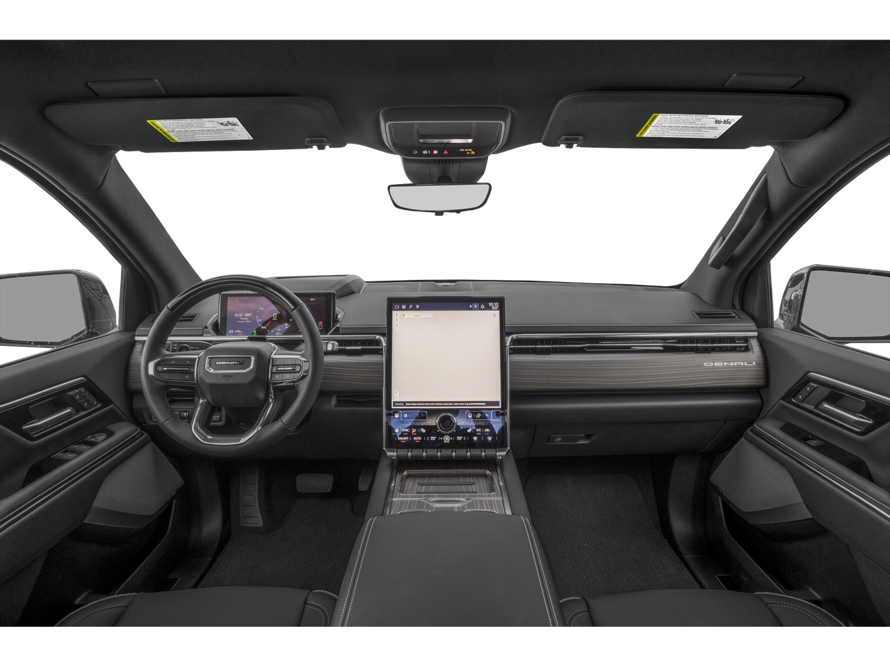 This vehicle includes the following Features: Sierra EV Denali, 4D Crew Cab, Electric, 1-Speed Automatic, AWD, Summit White, After Dark w/Premium Leather Alternative Seating Surfaces, Navigation System, 11.63 Axle Ratio, 4-Wheel Disc Brakes, 7 Speakers, 8-Way Power Driver Seat w/4-Way Power Lumbar, 8-Way Power Passenger Seat w/4-Way Power Lumbar, ABS brakes, Adaptive suspension, Air Conditioning, Alloy wheels, AM/FM radio: SiriusXM with 360L, Auto High-beam Headlights, Auto-dimming Rear-View mirror, Auto-leveling suspension, Automatic temperature control, Brake assist, Delay-off headlights, Driver & Front Passenger Ventilated Seats, Driver door bin, Driver vanity mirror, Dual front impact airbags, Dual front side impact airbags, Dual Level Charge Cord, Electronic Stability Control, Emergency communication system: OnStar, Four wheel independent suspension, Front & Rear Adaptive Air Ride Suspension, Front anti-roll bar, Front Bucket Seats, Front Bucket Seats w/Center Console, Front Center Armrest w/Storage, Front dual zone A/C, Front fog lights, Front reading lights, Fully automatic headlights, Garage door transmitter, Genuine wood console insert, Genuine wood dashboard insert, Heads-Up Display, Heated door mirrors, Heated Front Driver & Passenger Seats, Heated front seats, Heated rear seats, Heated steering wheel, Low tire pressure warning, Memory seat, Occupant sensing airbag, Outside temperature display, Overhead airbag, Overhead console, Panic alarm, Passenger door bin, Passenger vanity mirror, Power door mirrors, Power driver seat, Power passenger seat, Power steering, Power windows, Premium 7-Speaker Bose Sound System, Premium audio system: Premium GMC Infotainment System, Premium Leather Alternative Seating Surfaces, Radio data system, Radio: 16.8 Diagonal Premium GMC Infotainment Sys, Rain sensing wipers, Rear fog lights, Rear reading lights, Rear seat center armrest, Rear step bumper, Rear window defroster, Remote keyless entry, Security system, SiriusXM w/360L Trial Subscription, Soft Rolling Truck Bed Cover (LPO), Speed control, Speed-sensing steering, Split folding rear seat, Sport steering wheel, Steering wheel memory, Steering wheel mounted audio controls, Telescoping steering wheel, Tilt steering wheel, Traction control, Trip computer, Variably intermittent wipers, Ventilated front seats, and Wheels: 24 x 9.0 Aluminum.